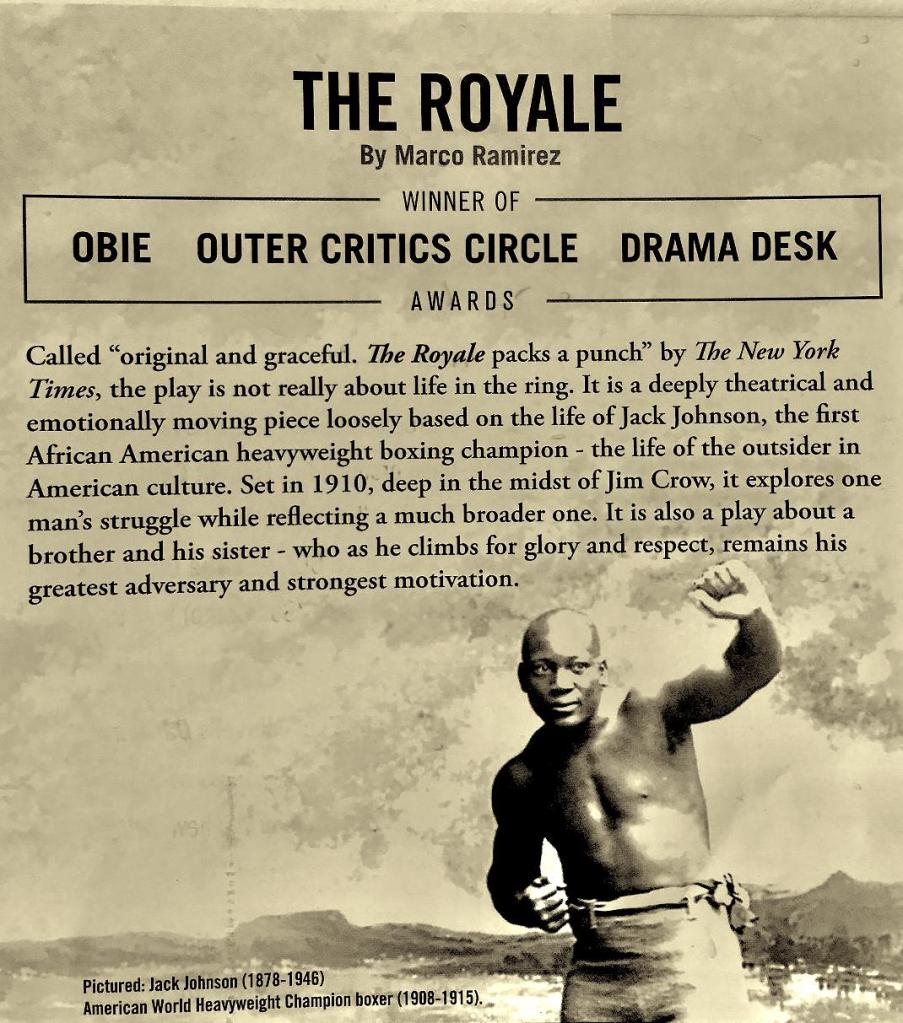 I believe that ATC’s The Royale will make its “mark” with its team, including its ensemble, artists, and creators, and it will make a smashing hit (i.e. punch) in the world of professional theatre.